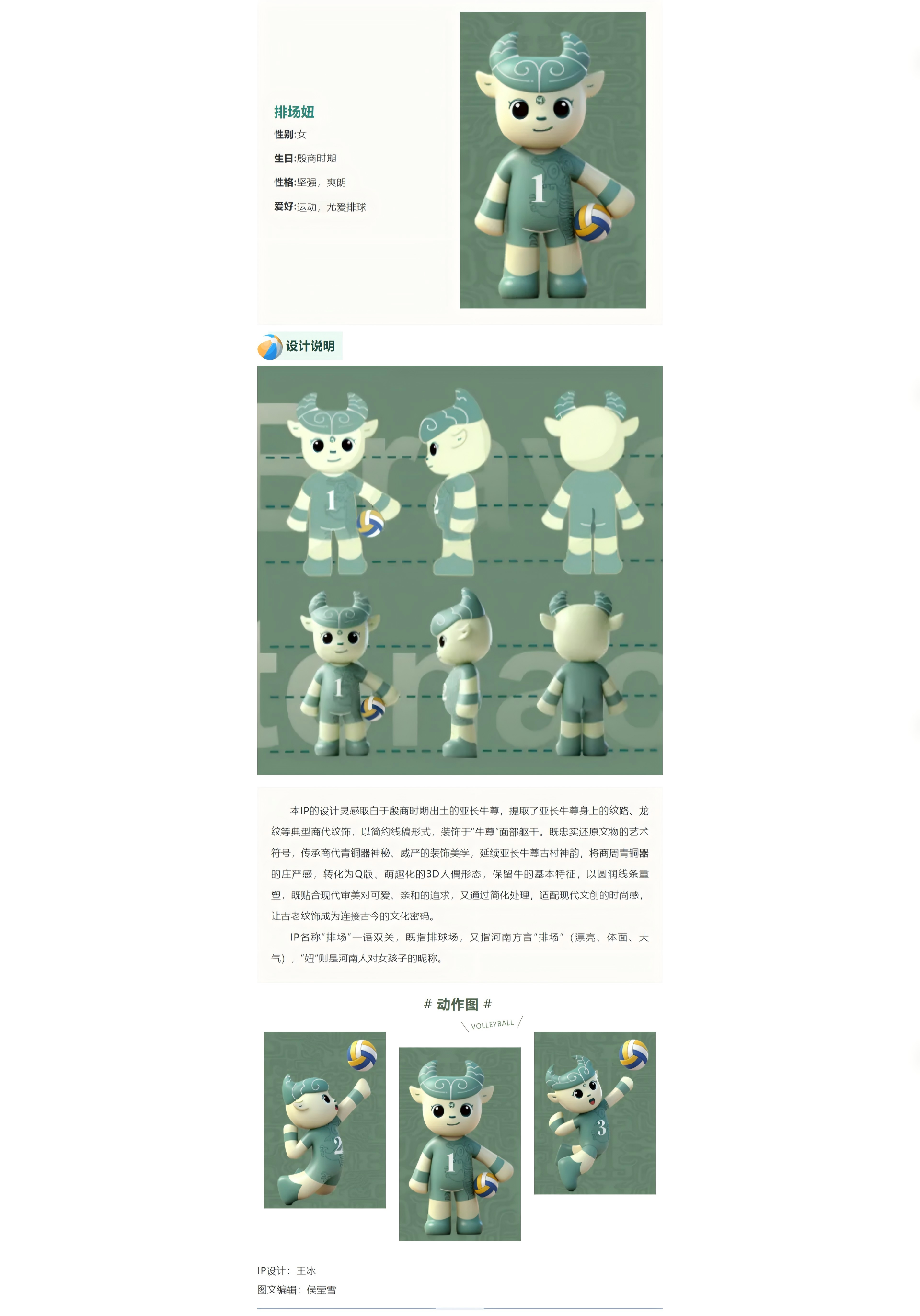 豫排聯(lián)賽場(chǎng)外不少觀眾都注意到了本次大賽的吉祥物——排場(chǎng)妞。這個(gè)可愛靈動(dòng)的形象,其設(shè)計(jì)靈感正來自于殷商時(shí)期出土的亞長(zhǎng)牛尊。